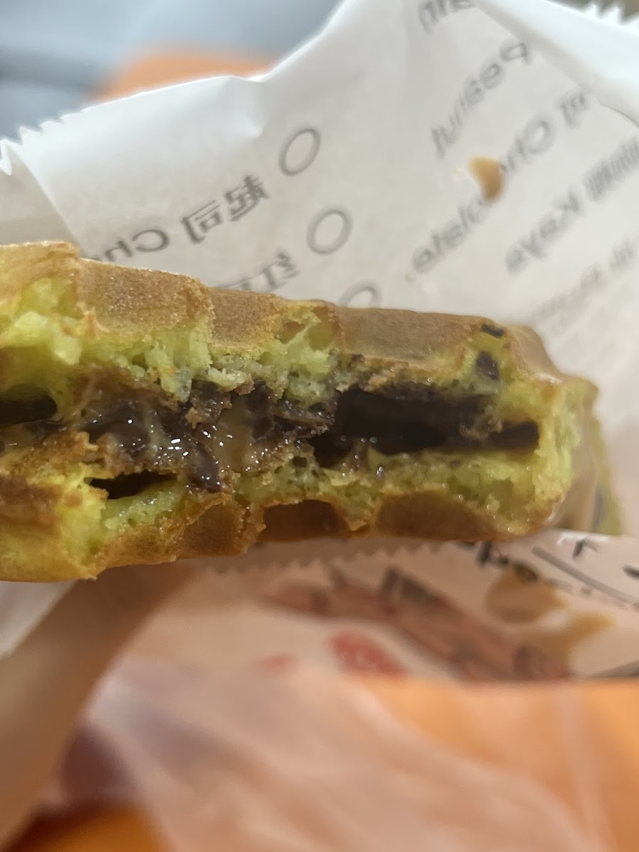 This cafe’s standout offering is its homemade waffle batter, which carries a genuine pandan fragrance without any artificial sweetness. The waffles come out piping hot with a delicate crispness on the outside, making them a little different from the usual soft-style waffles you might find elsewhere. The fillings—ranging from peanut and chocolate to rich black sesame—are applied generously, often spread on both sides, offering a nice balance to the crisp texture.