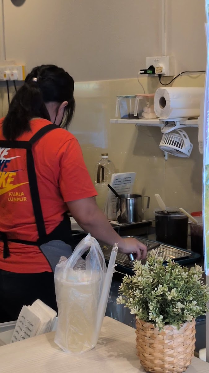 Gambateh Cafe is a casual spot tucked away along Jalan Bukit Merah, best known for its uniquely crispy pandan waffles that draw a steady flow of locals looking for a quick, satisfying snack. There are no dining seats here, so it’s a grab-and-go kind of place, popular among those in the neighborhood who want a flavorful treat without fuss.